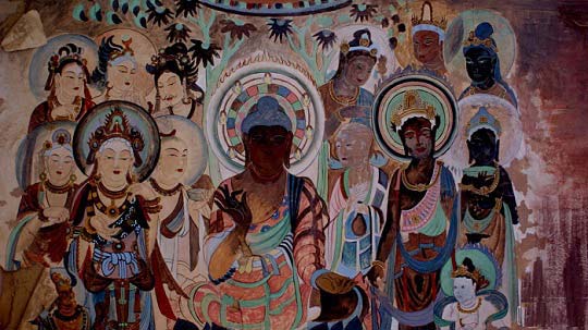 流暢婉轉的線條、美輪美奐的色彩與相映生輝的圖案,共同匯聚成了一幅幅浩瀚佛界與世間眾生和諧相生的絕美畫面;喜怒安詳的彩塑,身姿綽約,婀娜唯美,每一具都堪比東方的“維納斯”;還有那些藏經洞里的珍貴文獻,讓我們真切地觸摸到了歷史的脈動,在歷史悠久的莫高窟,藝術文化與我們近在咫尺!