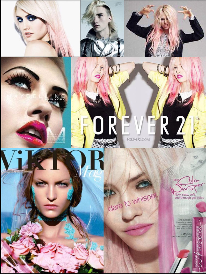 雜志媒體:《Vogue》《Vogue Homme》《Wonderland》《American Salon》《名利場》《花花公子》《人物》《模特沙龍》《hello!》